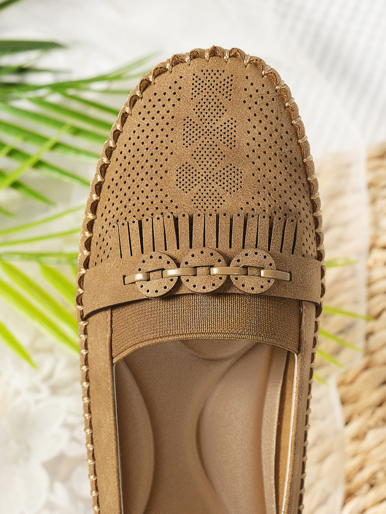 The cushion-like, double-padded memory foam insole is very soft. And the sandal is easy to combine.